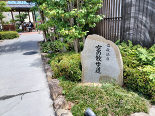 空の散歩道と足湯
